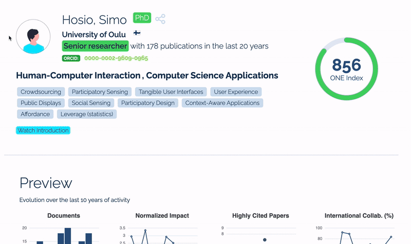 | Access to author's advanced indicators covering research performance, impact, excellence, leadership, collaboration, openness, and more... | Included |