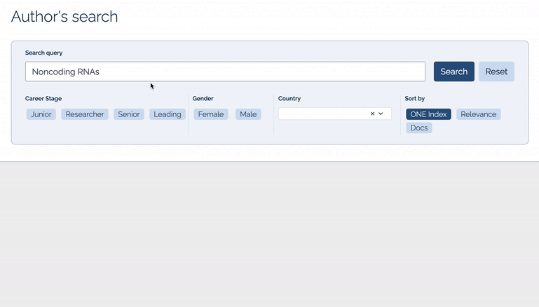 Unlock the full potential of your recruitment process with ONE’s advanced tools. Identify top candidates globally, filtering by career stage, gender, country or research topic. Paired with the ONE Index these features enable a proactive recruitment strategy that ensures you target and attract the very best talent to your institution. For a reactive approach, seamlessly benchmark all applicants' profiles directly on the platform, comparing key attributes like productivity, leadership, and impact to confidently select candidates who align perfectly with your institution’s goals. Whether you’re headhunting or evaluating applicants, ONE ensures your recruitment decisions are data-driven and impactful.
